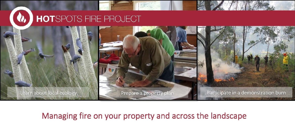 The Hotspots Fire Project enables landholders and public land managers to work together to reduce bushfire risk across the landscape, whilst maintaining and improving biodiversity and protecting Cultural Heritage.